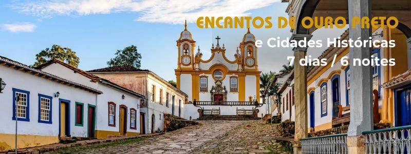 Recepção no Aeroporto e transporte para o hotel. Aproveite o dia para conhecer as atrações e o charme de Ouro Preto, com suas ruas históricas, arquitetura colonial e artesanato típico.